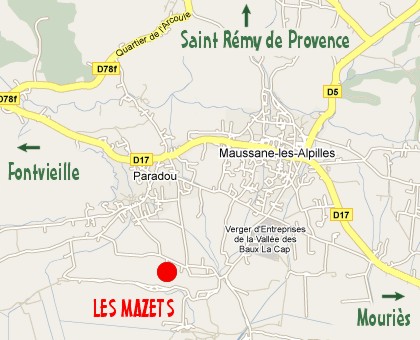 aux pieds du village des Baux de Provence, dans une plaine fertile